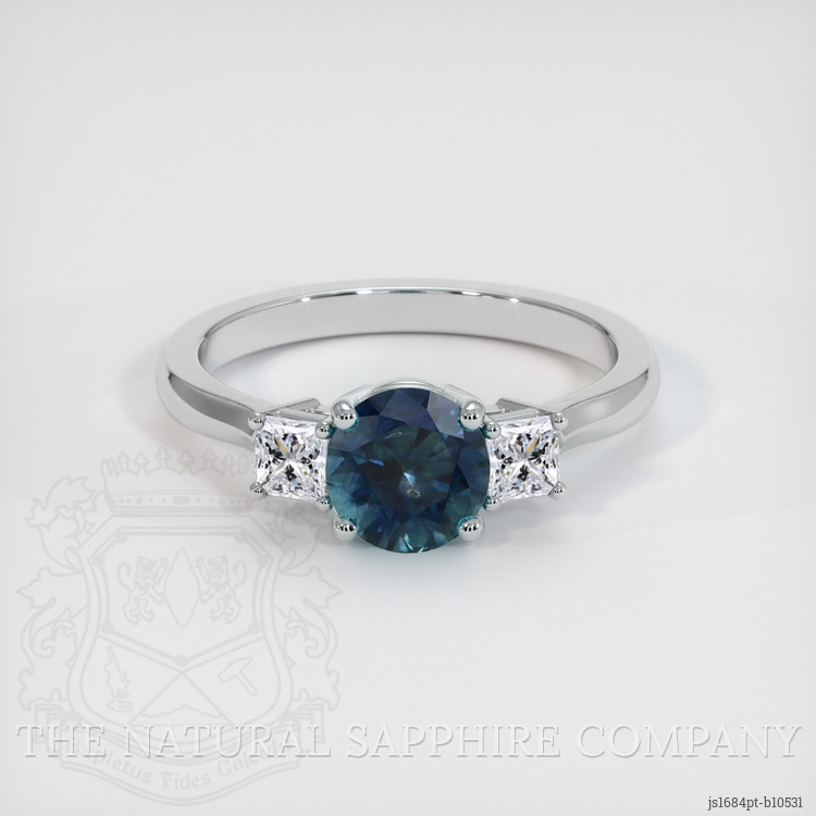 Three Stone Greenish Blue Sapphire Ring 1.56 Ct., Platinum 950