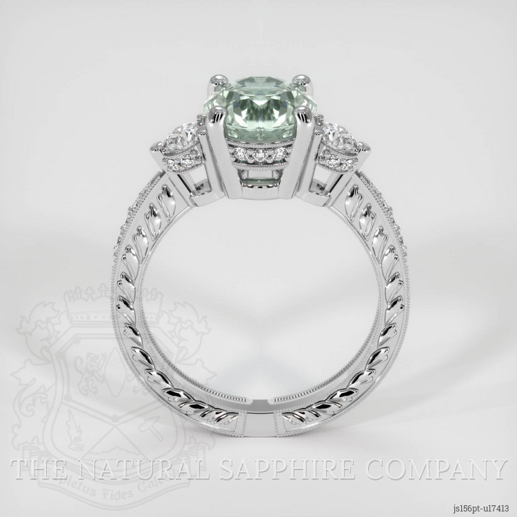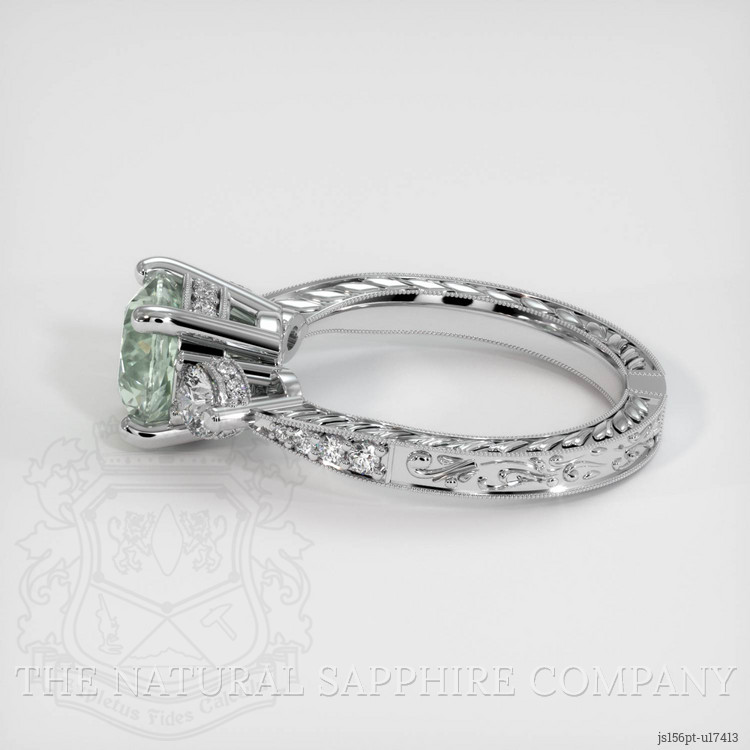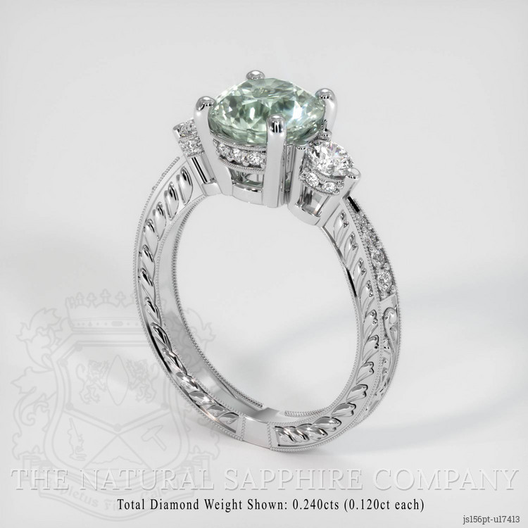 Antique Style Greenish Blue Sapphire Ring 1.92 Ct., Platinum 950