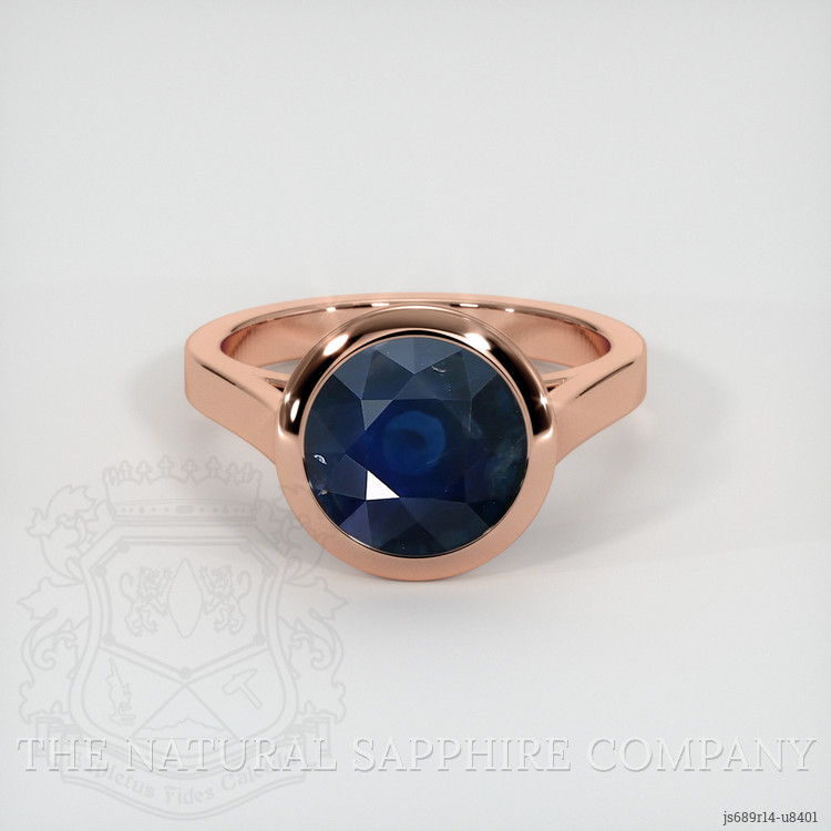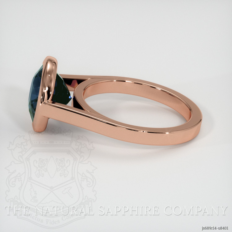 Bezel Greenish Blue Sapphire Ring 4.02 Ct., 14K Rose Gold