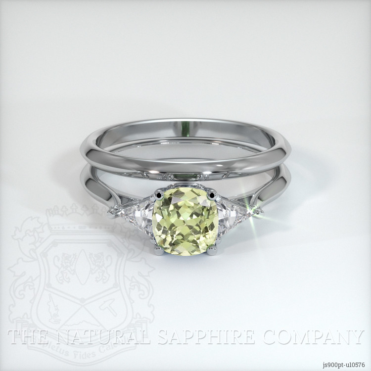 Three Stone Greenish Yellow Sapphire Ring 1.11 Ct., Platinum 950
