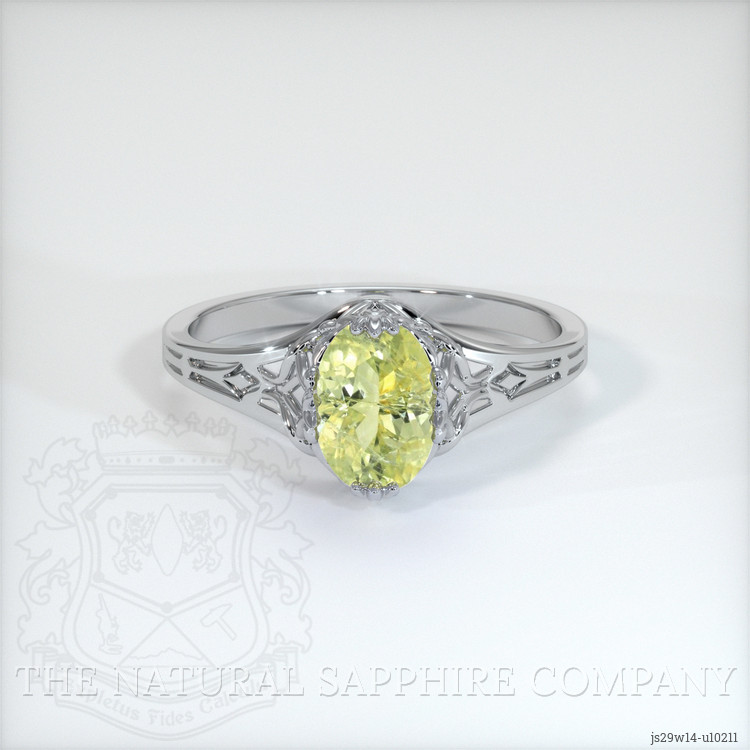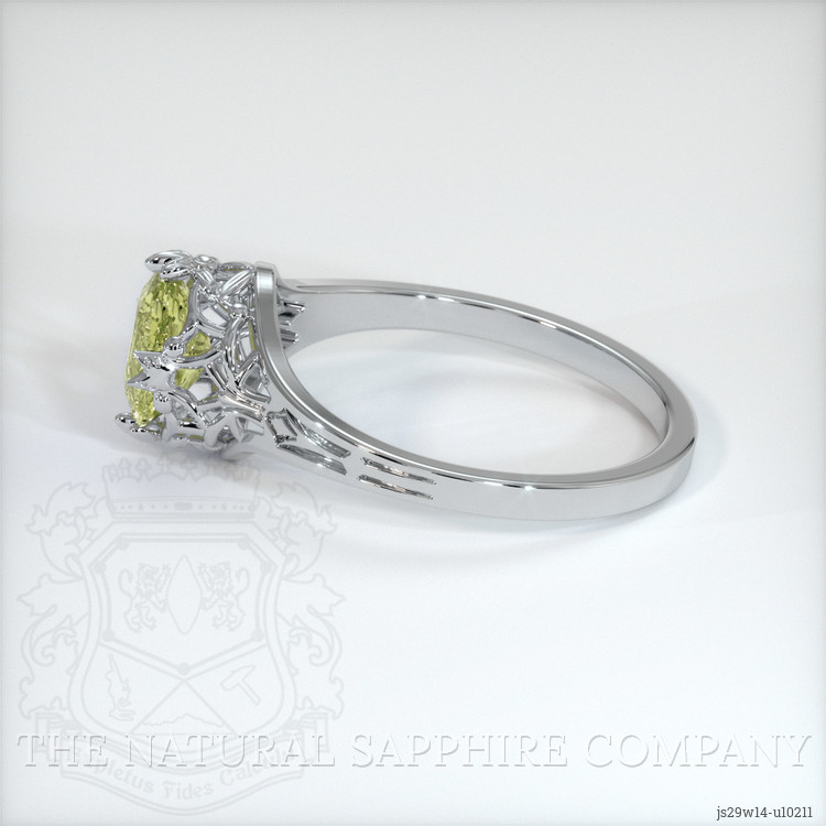 Antique Style Greenish Yellow Sapphire Ring 0.93 Ct., 14K White Gold