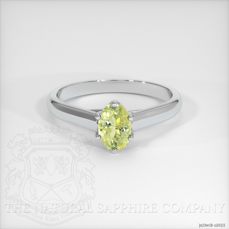Solitaire Greenish Yellow Sapphire Ring 0.93 Ct., 18K White Gold