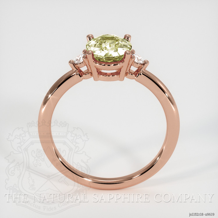 Three Stone Greenish Yellow Sapphire Ring 1.97 Ct., 18K Rose Gold