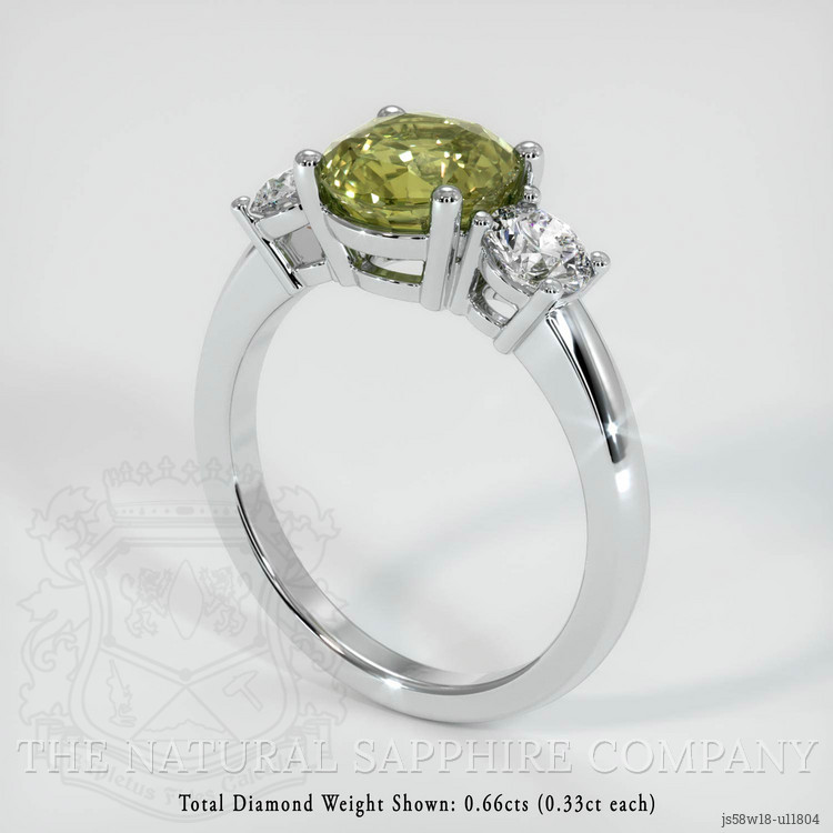 Three Stone Greenish Yellow Sapphire Ring 2.58 Ct., 18K White Gold