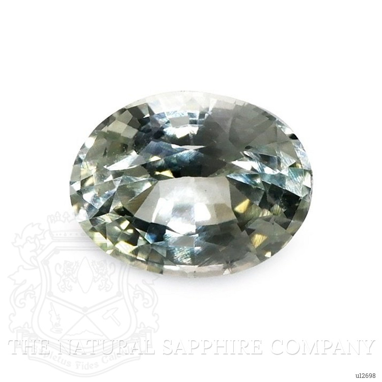 The ring features a beautiful, transparent 0.49 carat oval shape grey sapphire with the dimensions of 5.26 x 4.11 x 2.87 mm and a mixed brilliant cut. It has a clarity grade of eye clean (evaluated at eye level), very light color saturation, and an excellent polish. The origin of this sapphire is Montana.