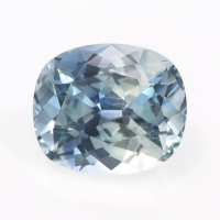 The men's ring features a beautiful, transparent 0.62 carat cushion shape greyish blue sapphire with the dimensions of 5.48 x 4.70 x 3.17 mm and a mixed brilliant cut. It has a clarity grade of very slightly included (evaluated at eye level), medium color saturation, and an excellent polish. The origin of this sapphire is Montana.