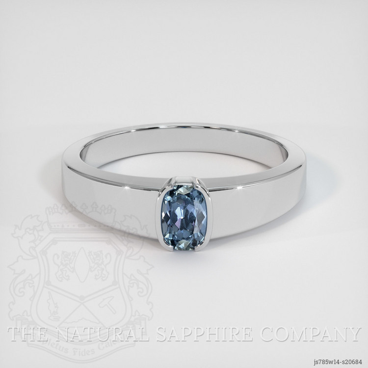 Men's Greyish Blue Sapphire Ring 0.98 Ct., 14K White Gold