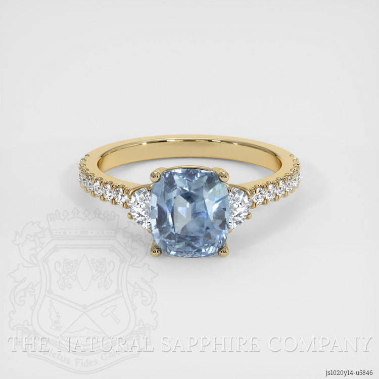 Three Stone Greyish Blue Sapphire Ring 3.48 Ct., 14K Yellow Gold