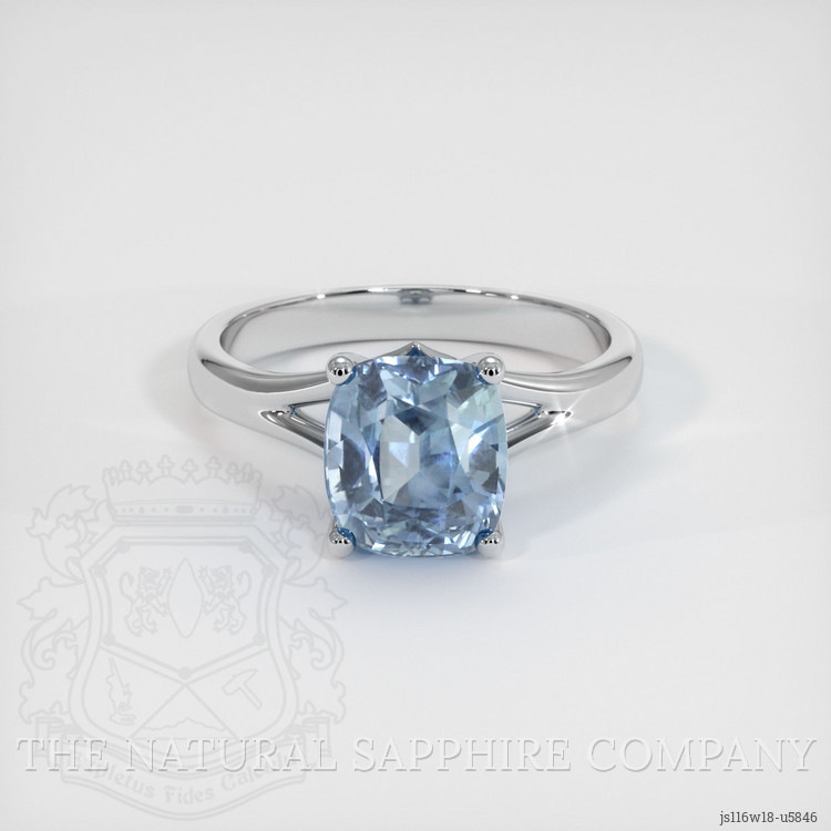 Solitaire Greyish Blue Sapphire Ring 3.48 Ct., 18K White Gold