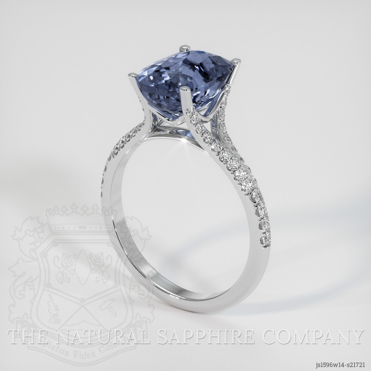 Introducing the perfect expression of elegance and sophistication from The Natural Sapphire Company, where we understand the importance of finding a piece that resonates deeply with a feeling, a commitment, or even a lifelong passion. Whether you're on a quest for the ideal engagement ring or searching for a rare gemstone to enhance your collection, our exquisite piece promises to be the quintessential solution. At the heart of this exceptional ring lies a stunning transparent 3.53 carat cushion-shaped greyish blue sapphire, a gem that invites admiration with its dimensions of 9.64 x 6.85 x 5.54 mm and a mixed brilliant cut that radiates a captivating brilliance with every movement.