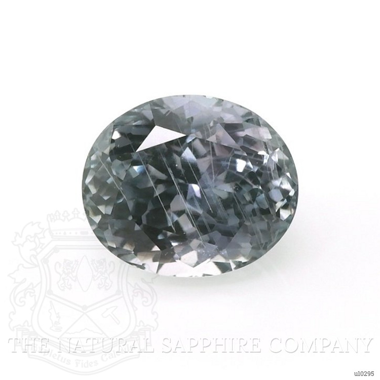 The ring features a beautiful, transparent 1.62 carat oval shape grayish blue sapphire with the dimensions of 7.39 x 6.21 x 4.63 mm and a mixed brilliant cut. It has a clarity grade of very slightly included (evaluated at eye level), intense color saturation, and an excellent polish. The origin of this sapphire is Montana.