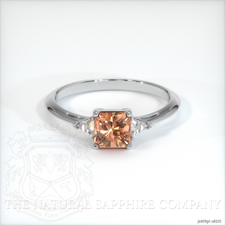 Three Stone Orangish Brown Sapphire Ring 0.97 Ct., Platinum 950