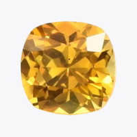 The men's ring features a beautiful, transparent 0.61 carat cushion shape orangish yellow sapphire with the dimensions of 4.84 x 4.68 x 3.31 mm and a mixed brilliant cut. It has a clarity grade of very slightly included (evaluated at eye level), vivid color saturation, and an excellent polish. The origin of this sapphire is Ceylon (Sri Lanka).