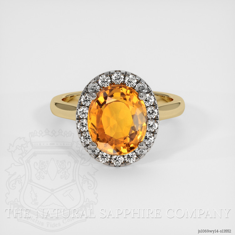 Pave Orangish Yellow Sapphire Ring 2.90 Ct., 14K White & Yellow