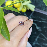 The pendant features a beautiful, transparent C.Dunaigre certified Orangy-Pink 1.63 carat oval shape padparadscha sapphire with the dimensions of 8.04 x 6.17 x 4.03 mm and a mixed brilliant cut. It has a clarity grade of eye clean (evaluated at eye level), intense color saturation, and an excellent polish. The origin of this sapphire is Mozambique.