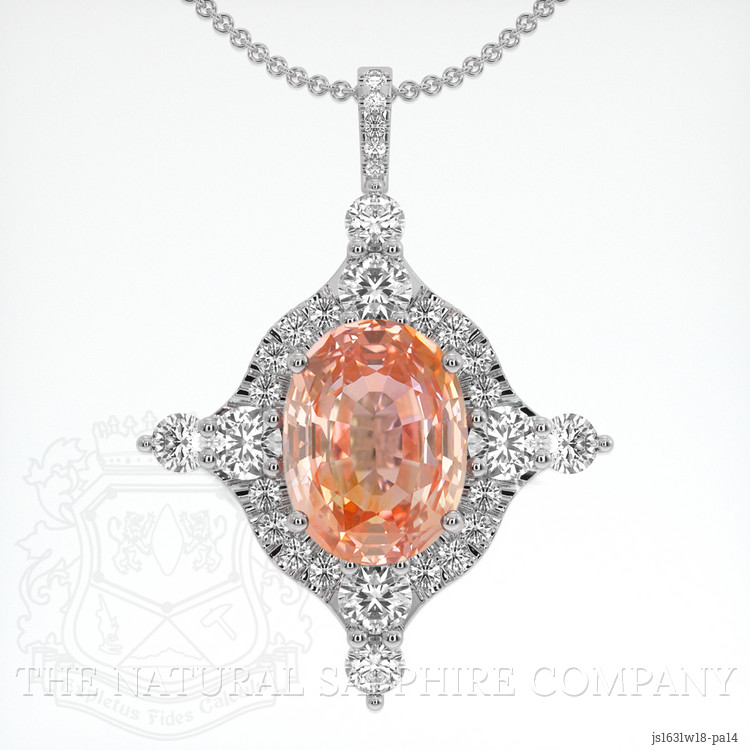 Pave Padparadscha Sapphire Pendant 28.85 Ct., 18K White Gold