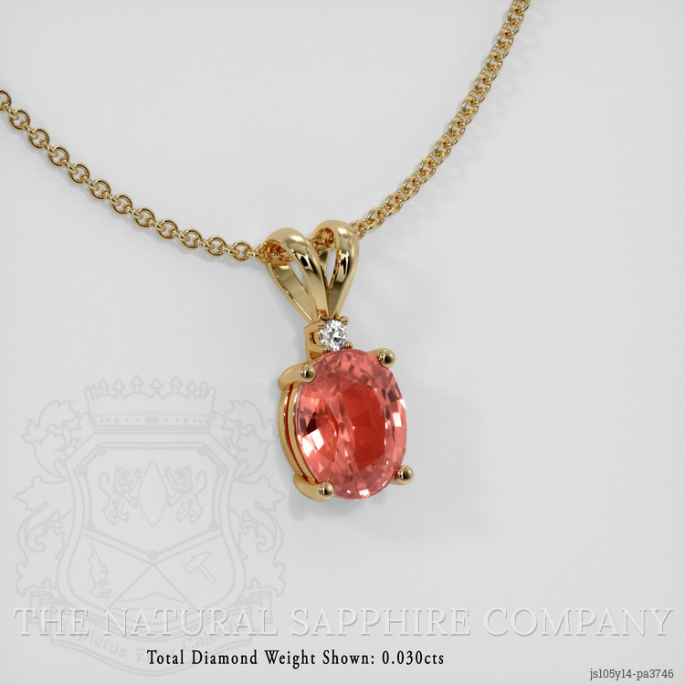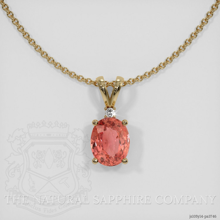 Accent Stones Padparadscha Sapphire Pendant 3.03 Ct., 14K Yellow Gold