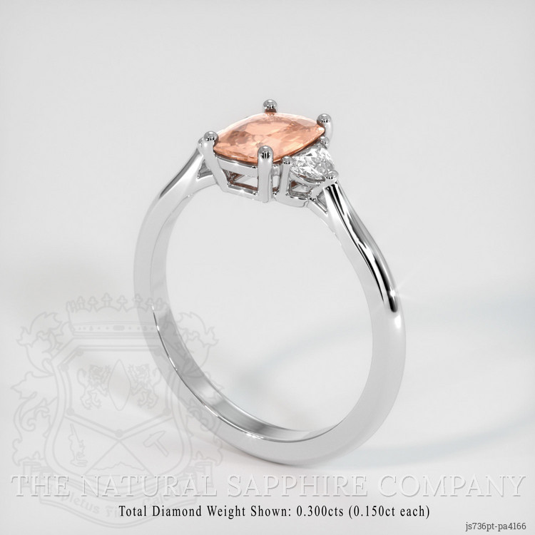 Three Stone Padparadscha Sapphire Ring 1.05 Ct., Platinum 950