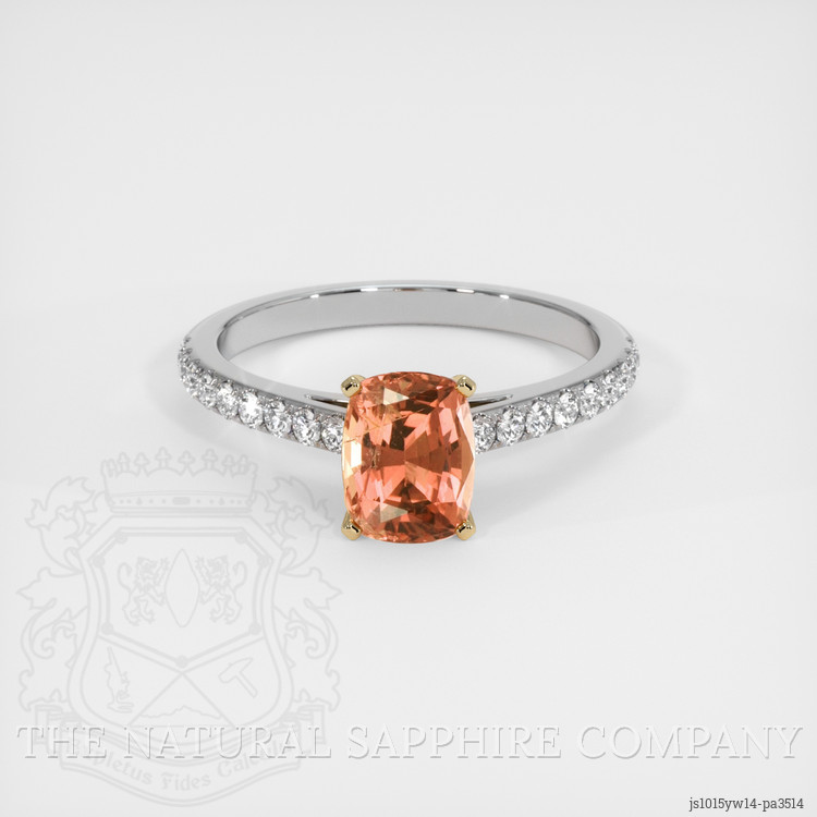 Pave Padparadscha Sapphire Ring 1.59 Ct., 14K Yellow & White