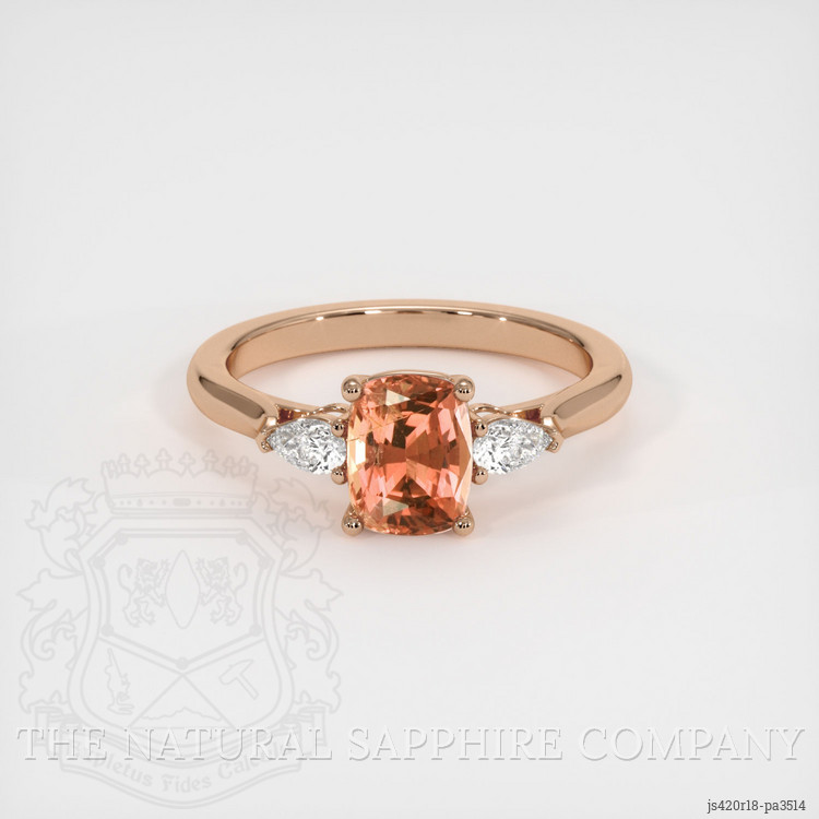 Three Stone Padparadscha Sapphire Ring 1.59 Ct., 18K Rose Gold