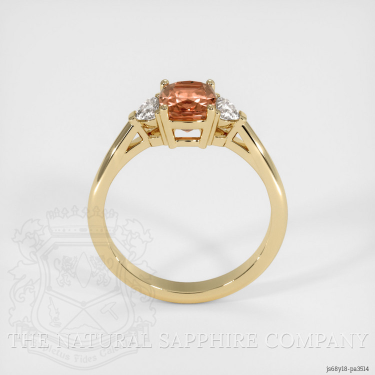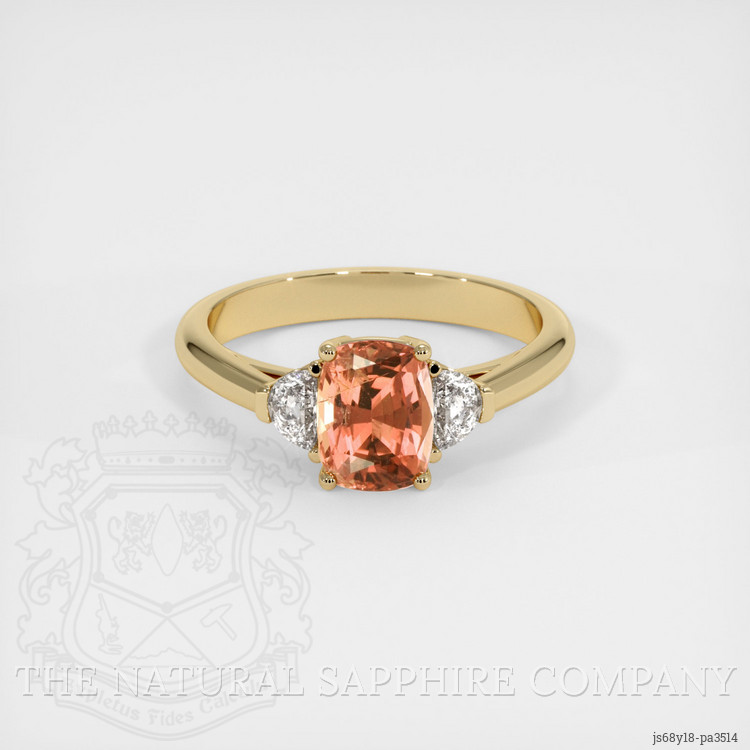 Three Stone Padparadscha Sapphire Ring 1.59 Ct., 18K Yellow Gold