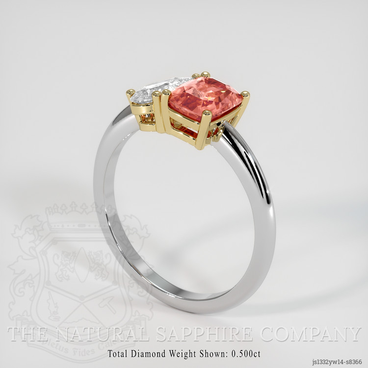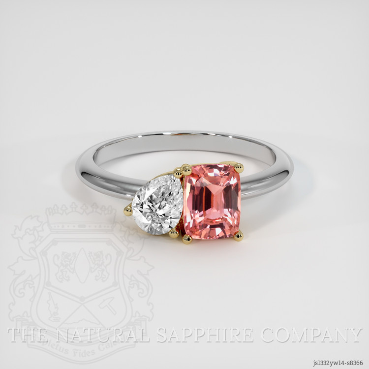 Paired with the Padparadscha sapphire are delicate white pear-shaped diamonds, totaling approximately 0.50 carats. The diamonds, with a clarity of VS1 to VS2 and a color grade of F, serve as ethereal companions to the sapphire, enhancing its beauty while standing in harmonious contrast. Together, they are embraced by twin bands of 18K yellow and white gold, symbolizing unity and balance. This thoughtful composition by The Natural Sapphire Company is not just a ring, but a wearable testament to transformation, capturing nature’s elegance and the hopes of new beginnings within its bands.
