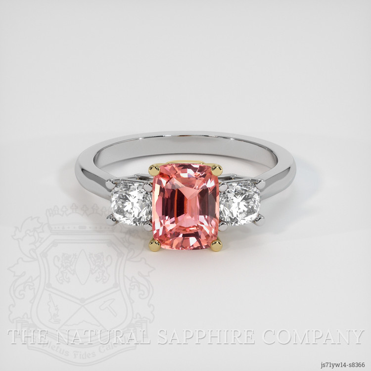 Introducing a breathtaking fusion of elegance and craftsmanship, this exquisite ring from The Natural Sapphire Company showcases an unparalleled centerpiece: a transparent GIA certified Padparadscha sapphire. Weighing an impressive 1.60 carats, the gemstone is exquisitely fashioned in a cushion shape, measuring 7.24 x 5.66 x 4.02 mm. Its mixed brilliant cut is meticulously crafted to reflect maximum light, allowing the intense color saturation of the padparadscha sapphire to radiate with brilliance.