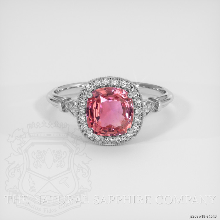 Antique Style Padparadscha Sapphire Ring 1.61 Ct., 18K White Gold