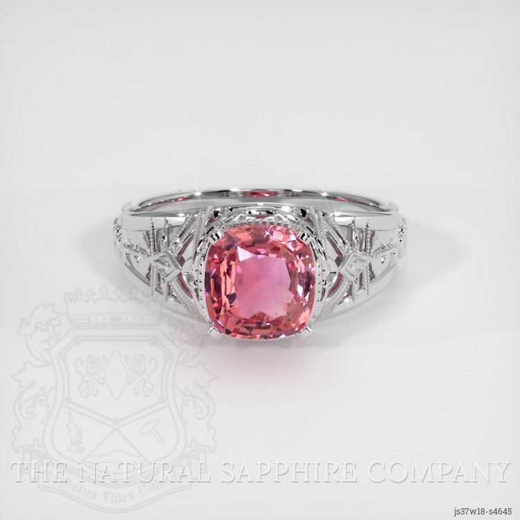Antique Style Padparadscha Sapphire Ring 1.61 Ct., 18K White Gold