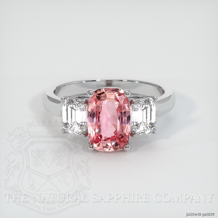Three Stone Padparadscha Sapphire Ring 1.96 Ct., 18K White Gold