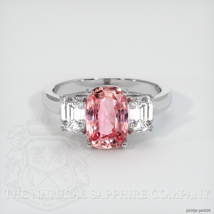 Three Stone Padparadscha Sapphire Ring 1.96 Ct., Platinum 950