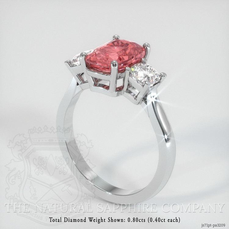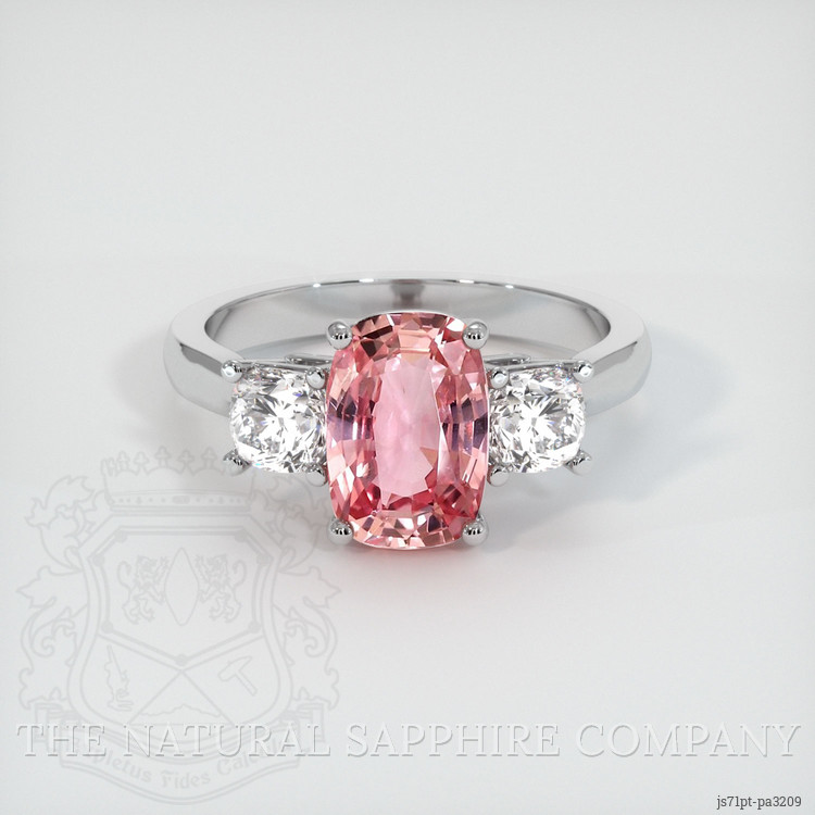 Three Stone Padparadscha Sapphire Ring 1.96 Ct., Platinum 950