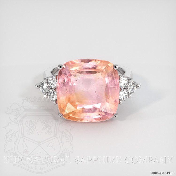 Accent Stones Padparadscha Sapphire Ring 12.48 Ct., 18K White Gold