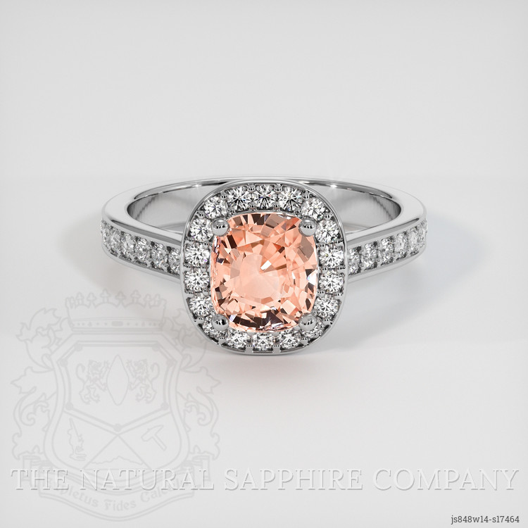 Pave Padparadscha Sapphire Ring 2.06 Ct., 14K White Gold