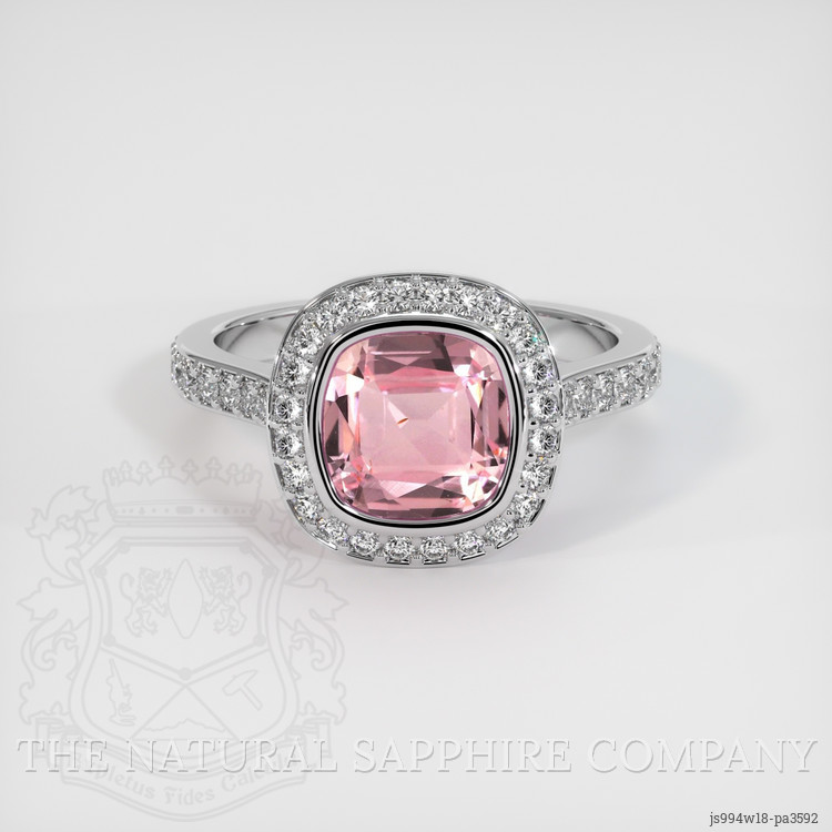 Pave Padparadscha Sapphire Ring 2.07 Ct., 18K White Gold