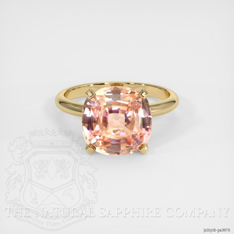Solitaire Padparadscha Sapphire Ring 5.19 Ct., 18K Yellow Gold