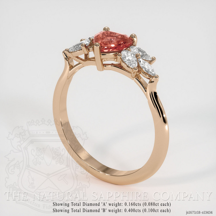 Accent Stones Padparadscha Sapphire Ring 1.03 Ct., 18K Rose Gold