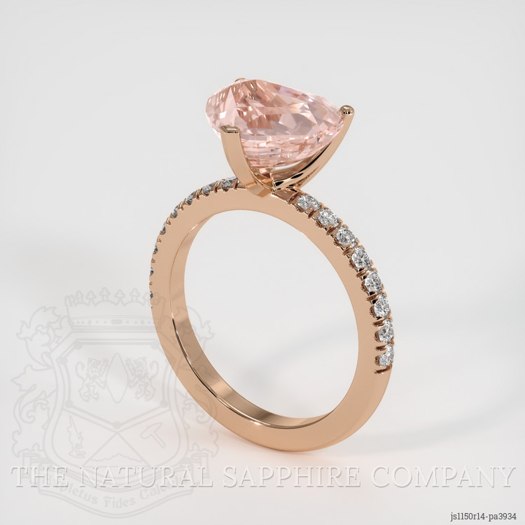 Pave Padparadscha Sapphire Ring 3.07 Ct., 14K Rose Gold