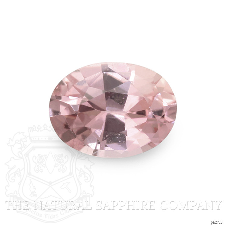 The ring features a beautiful, transparent 0.31 carat oval shape padparadscha sapphire with the dimensions of 4.83 x 3.59 x 2.36 mm and a mixed brilliant cut. It has a clarity grade of very slightly included (evaluated at eye level), medium intense color saturation, and an excellent polish. The origin of this sapphire is Ceylon (Sri Lanka).