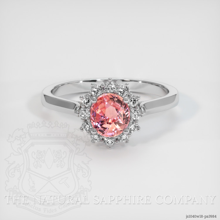 Antique Style Padparadscha Sapphire Ring 1.03 Ct., 18K White Gold