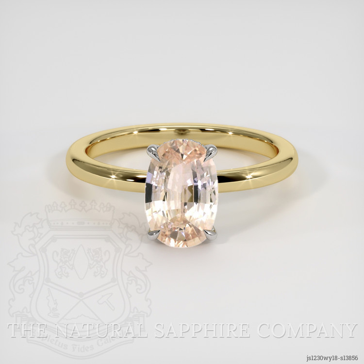 The exquisite ring from The Natural Sapphire Company showcases an opulent 1.75 carat oval-shaped padparadscha sapphire at its center. Hailing from the esteemed mines of Ceylon, this sapphire stands as a testament to exceptional craftsmanship, with its impeccable mixed brilliant cut enhancing the stone’s natural allure. Measuring 8.94 x 6.04 x 3.67 mm, the gemstone radiates a medium light color saturation, embodying a gentle yet vibrant hue that captures the eye. The clarity grade is very very slightly included, offering a near-perfect view that delights even the most discerning admirers. Notably, this sapphire remains entirely unenhanced, preserving its authentic beauty. Complementing the sapphire, the excellent polish provides a mirror-like sheen, further enhancing the ring's luminosity.