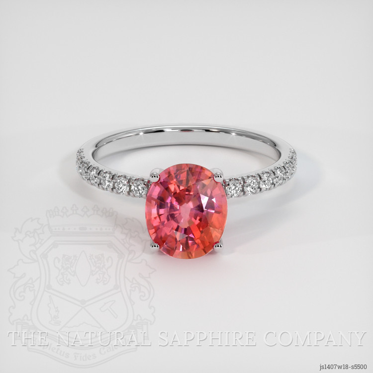 From the remote landscapes of Mozambique, where the Earth cradles its treasured gems, emerges the exquisite padparadscha sapphire. This pinkish orange marvel begins its journey deep in the warmth of the African soil, a testament to nature's artistry. At The Natural Sapphire Company, we honor this wondrous creation by meticulously crafting it into a symbol of eternal love, set within a ring that speaks to the hearts of those who behold it. Graced with a transparent 2.04 carat oval cut, this sapphire sparkles with an unmatched brilliance, captivating with its vivid color saturation and expert polish.