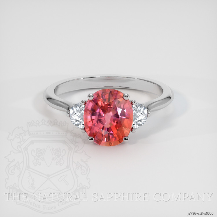 Crafted with an appreciation for history and a focus on unparalleled quality, the ring is entirely set in 18K white gold, known for its purity and strength. This choice of metal not only supports and highlights the intricate design but also underscores our dedication at The Natural Sapphire Company to offer finely crafted jewelry pieces. The white gold setting provides a modern touch to the timeless allure that surrounds the padparadscha sapphire and its complementary diamonds, ensuring that this ring is not just seen, but remembered.