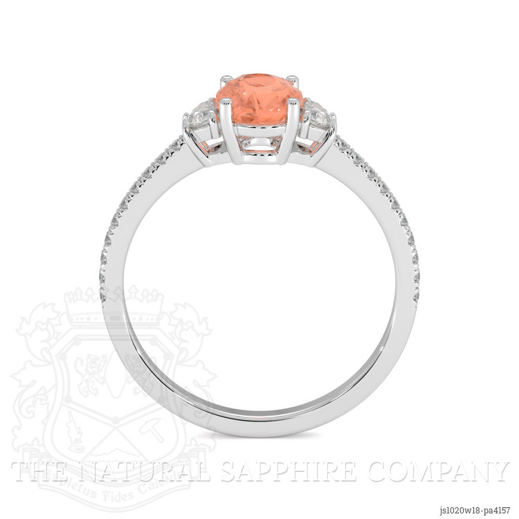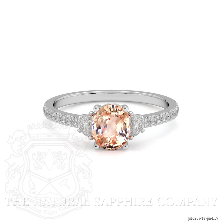 Introducing an exquisite creation from The Natural Sapphire Company, where elegance meets functionality in perfect harmony. This ring is more than a piece of jewelry; it is a statement of sophistication and an ode to lasting beauty. At its heart, the ring showcases a transparent C.Dunaigre certified padparadscha sapphire with a unique pinkish-orange hue that captivates and enchants. Weighing 2.12 carats and sculpted into an immaculate oval shape, this sapphire originates from the lush landscapes of Ceylon, adding an aura of mystique and exclusivity. The dimensions are meticulously crafted at 8.31 x 6.75 x 4.45 mm and the mixed brilliant cut ensures that this gem sparkles with superb brilliance. The stone's clarity is graded as very slightly included and when combined with medium color saturation and an excellent polish, it transforms into a showpiece that offers both allure and daily durability.
