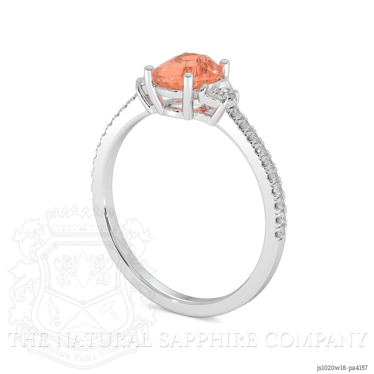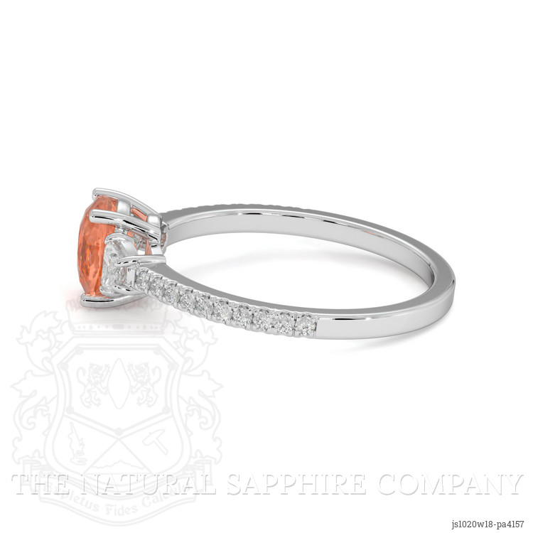 Three Stone Padparadscha Sapphire Ring 2.12 Ct., 18K White Gold