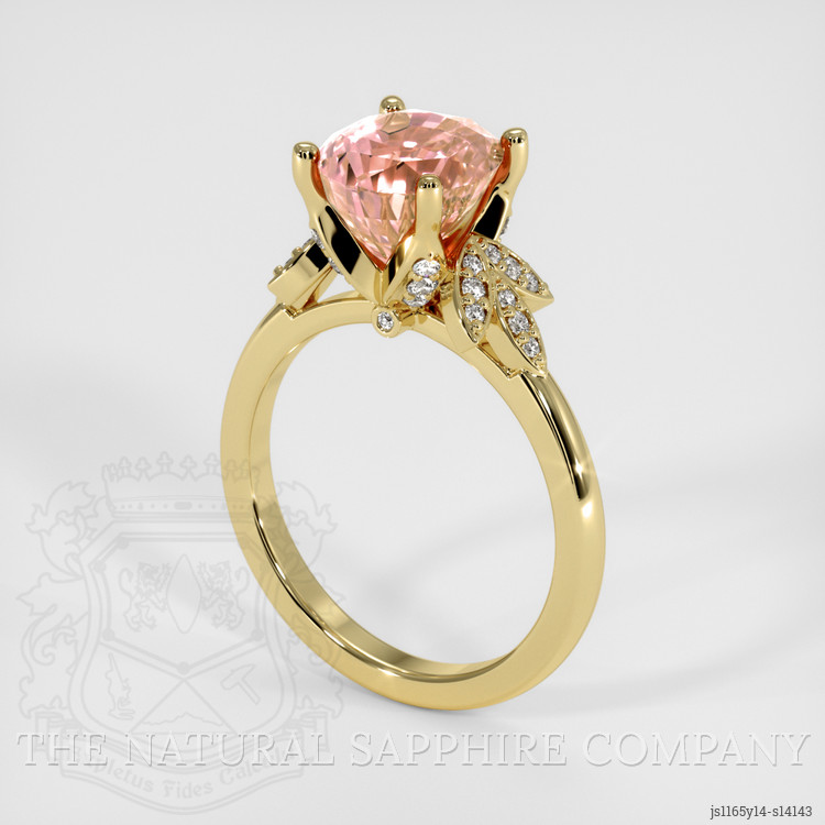 The setting of this ring plays a paramount role in the enhancement of the gemstone's color and clarity. Crafted in 14K yellow gold, the metal provides a warm complement to the padparadscha sapphire's unique hue, enriching its blend of pink and orange tones. This harmonious combination not only amplifies the gemstone’s innate beauty but also contributes to a majestic interplay of light and color, further emphasizing its excellent polish. The precise craftsmanship and the choice of gold are deliberately synced to elevate the gemstone, showcasing the expertise synonymous with The Natural Sapphire Company.