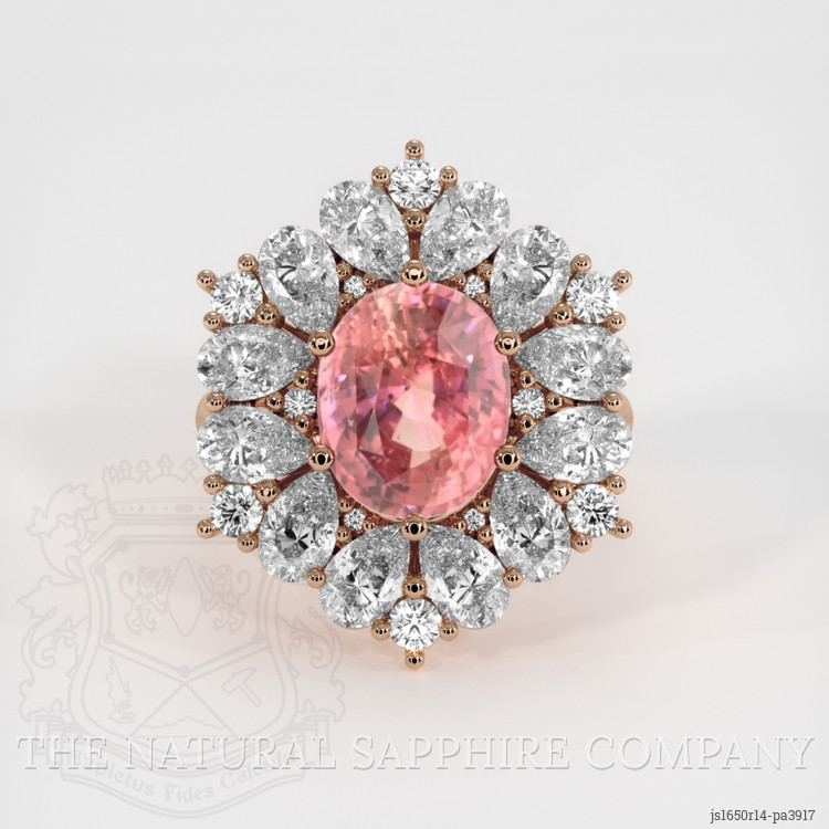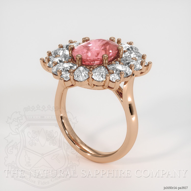Halo Padparadscha Sapphire Ring 4.50 Ct., 14K Rose Gold