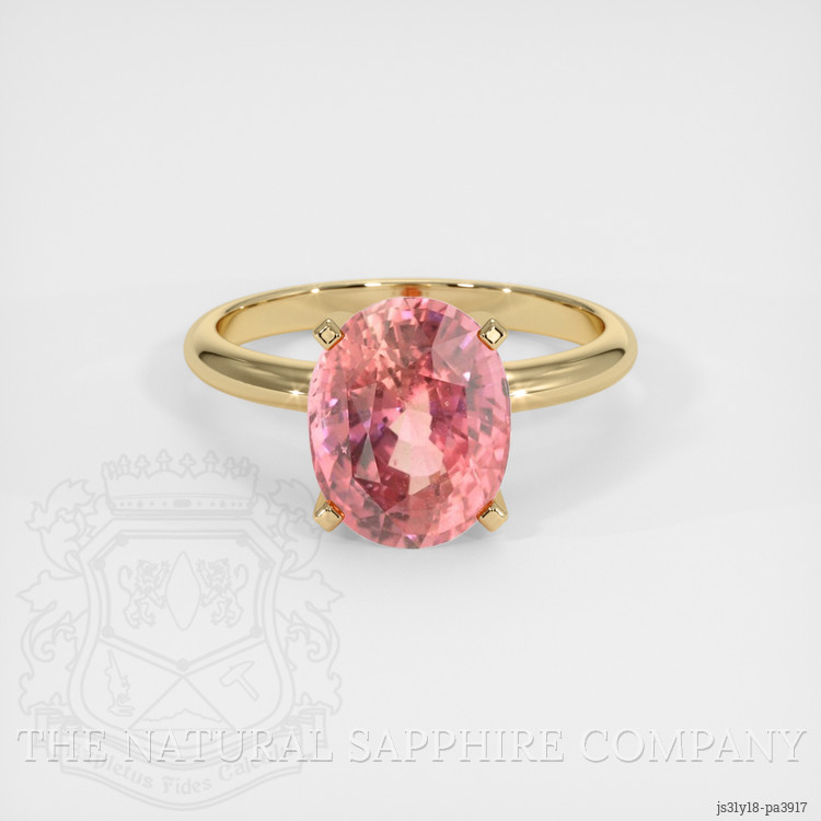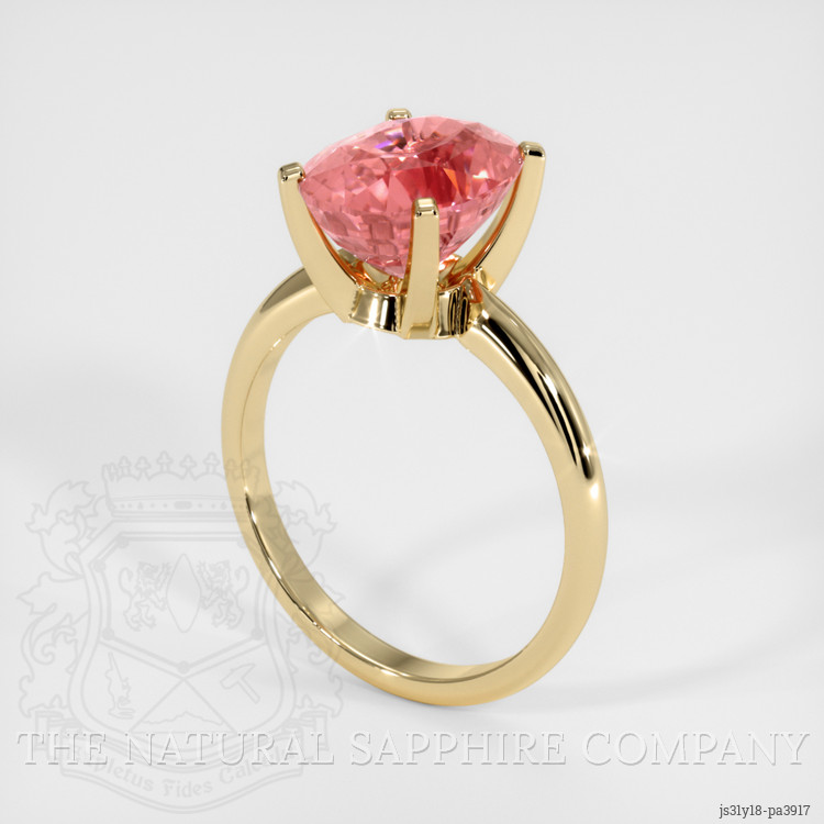Solitaire Padparadscha Sapphire Ring 4.50 Ct., 18K Yellow Gold