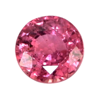 The ring features a beautiful, transparent 1.07 carat round shape padparadscha sapphire with the dimensions of 6.08 x 5.95 x 3.52 mm and a mixed brilliant cut. It has a clarity grade of very slightly included (evaluated at eye level), vivid color saturation, and an excellent polish. The origin of this sapphire is Madagascar.