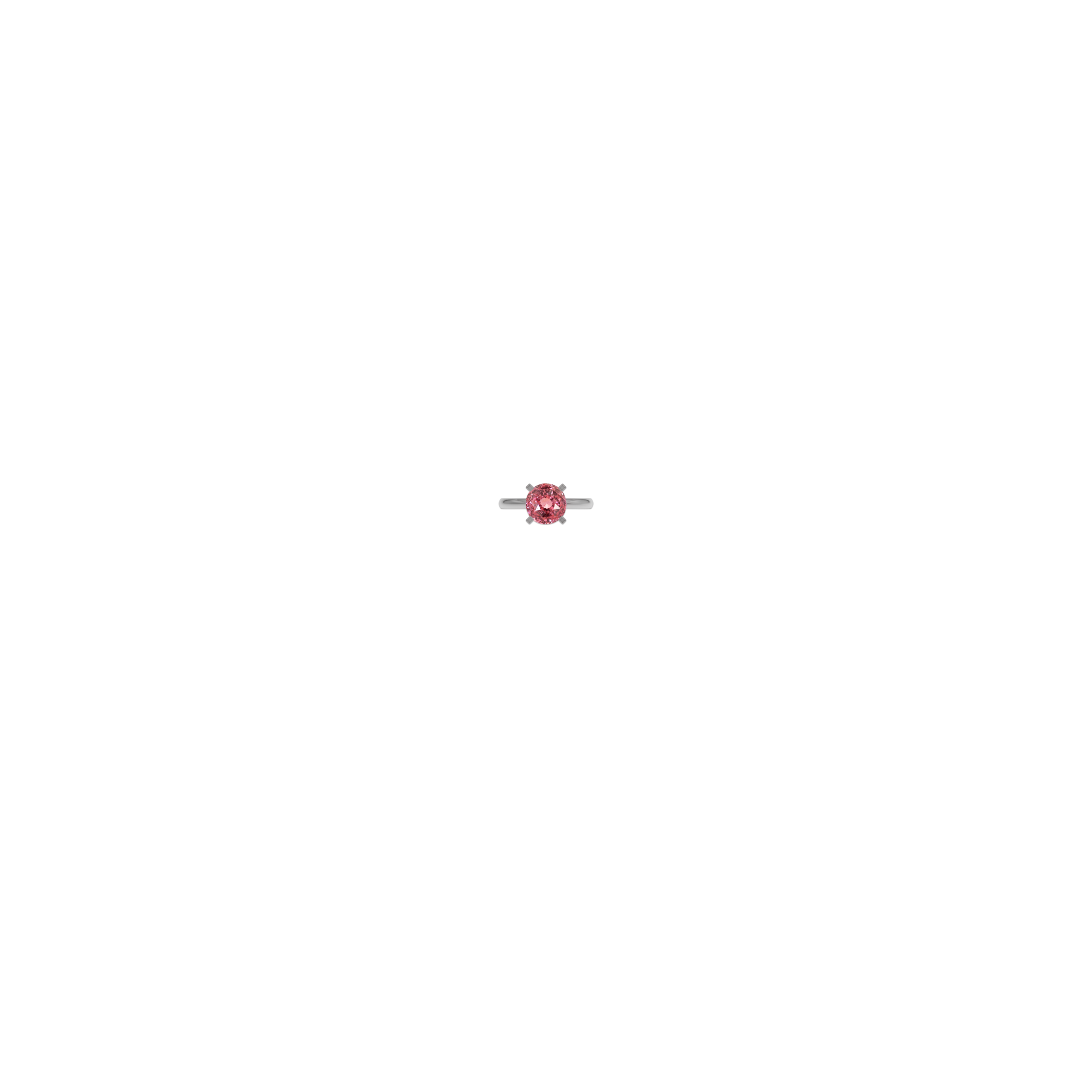 The ring features a beautiful, transparent Other certified Padparadscha 3.07 carat round shape padparadscha sapphire with the dimensions of 7.36 x 7.27 x 6.52 mm and a mixed brilliant cut. It has a clarity grade of very slightly included (evaluated at eye level), intense color saturation, and an excellent polish. The origin of this sapphire is Madagascar.